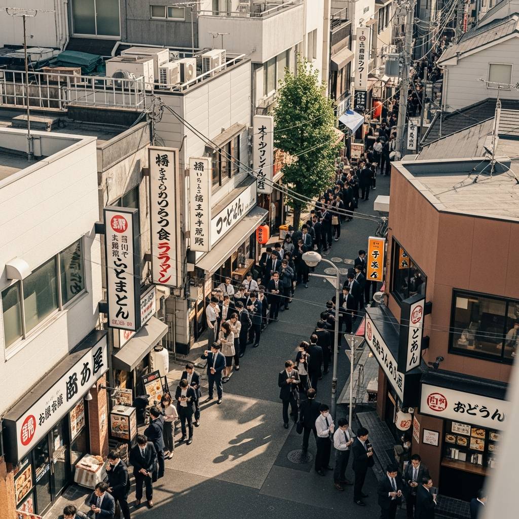 平日12時の神田駅周辺は、会社員たちが一斉に店へ向かうランチタイムのピークを迎えます。人気店では30分以上の行列が当たり前となり、限られた昼休みが待ち時間で消えてしまう事態も珍しくありません。しかし、地元で働くビジネスマンたちは独自の戦略で待ち時間をゼロにする術を編み出しています。